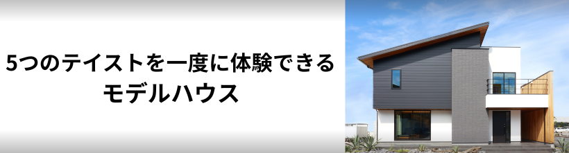 シックなテイストの1階、5つのテイストが違う部屋を「体験」していただける今までにないモデルハウスです。